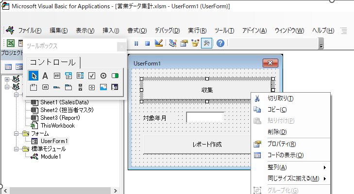 ユーザーフォーム(簡単に利用できるようにするため、標準モジュールは使っていません)